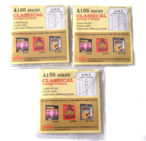 3 kompletta set med med strängar till nylonsträngad gitarr. Mycket god kvalitet.