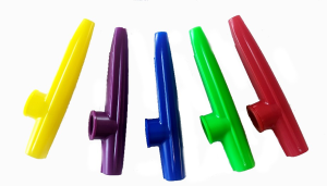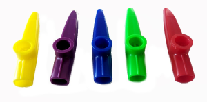 5 stycken kazoo i plast, blandade färger enligt bilder.