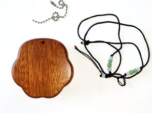 Ett perfekt litet instrument som du kan ta med överallt, ja du kan t.om. ha det som halsband med det medföljande bandet. Diameter ca 7 cm. Material: Trä och metall.