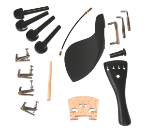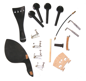 Fioltillbehör, 15 delar. Stall, finstämmare, hakstöd etc.