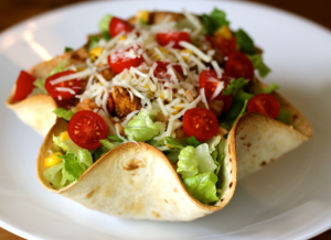 Lägg ett tortillabröd (gärna den mindre modellen) i skålen och sätt in ugnen på 190 grader i ca 10 minuter. Håll koll på bröden så du får den krispighet du vill ha. Fyll sedan med alla goda tillbehör du vill ha.