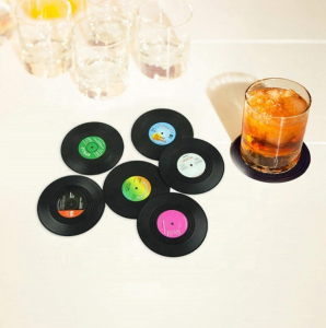 Festliga underlägg i form av mini-vinylskivor, 6 st. Ca 10,5 cm i diameter.