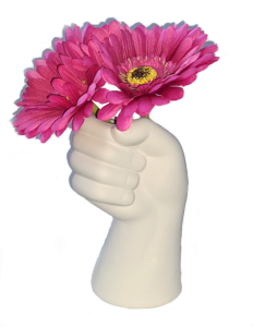 Vacker vas i form av en hand. Höjd ca 16 cm. Material: Resin. (blommorna på bilden ingår inte)