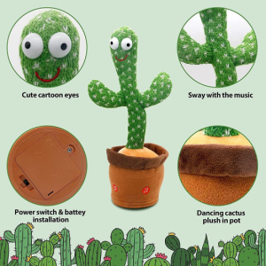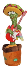 Festlig leksak för alla åldrar! En sjungande och dansande kaktus med gitarr, gjord av mjuk plysch, ca 35 cm hög.