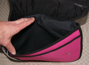Helt fantastisk väska, ser ut som tagen ur en serietidning. 2-dimensionell men med dragkedjor så man kan veckla ut den och får plats med en hel del. Kommer garanterat att dra uppmärksamhet till sej!