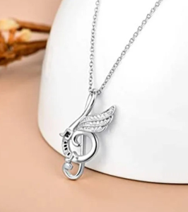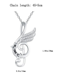 Trevligt halsband i form av en g-klav. Silverfärgad metall. Kedjans längd ca 45 cm.