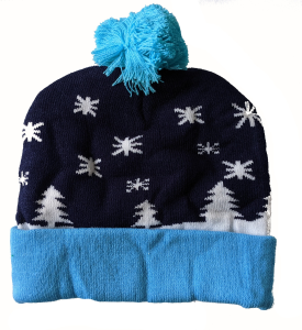 Festlig julmössa med LED-belysning. On-off knapp på framsidan, batterier ingår. 3 lägen; fast sken, snabbt blink, långsamt blink.