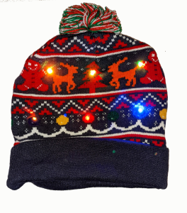 Festlig julmössa med LED-belysning. Töjbar, batterier ingår.