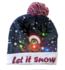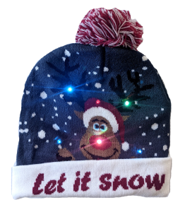 Festlig julmössa med LED-belysning. Töjbar, batterier ingår.