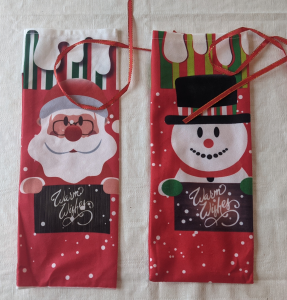 Trevliga tygpåsar för t.ex. vinflaskor att ge bort på julen. 2 olika modeller.